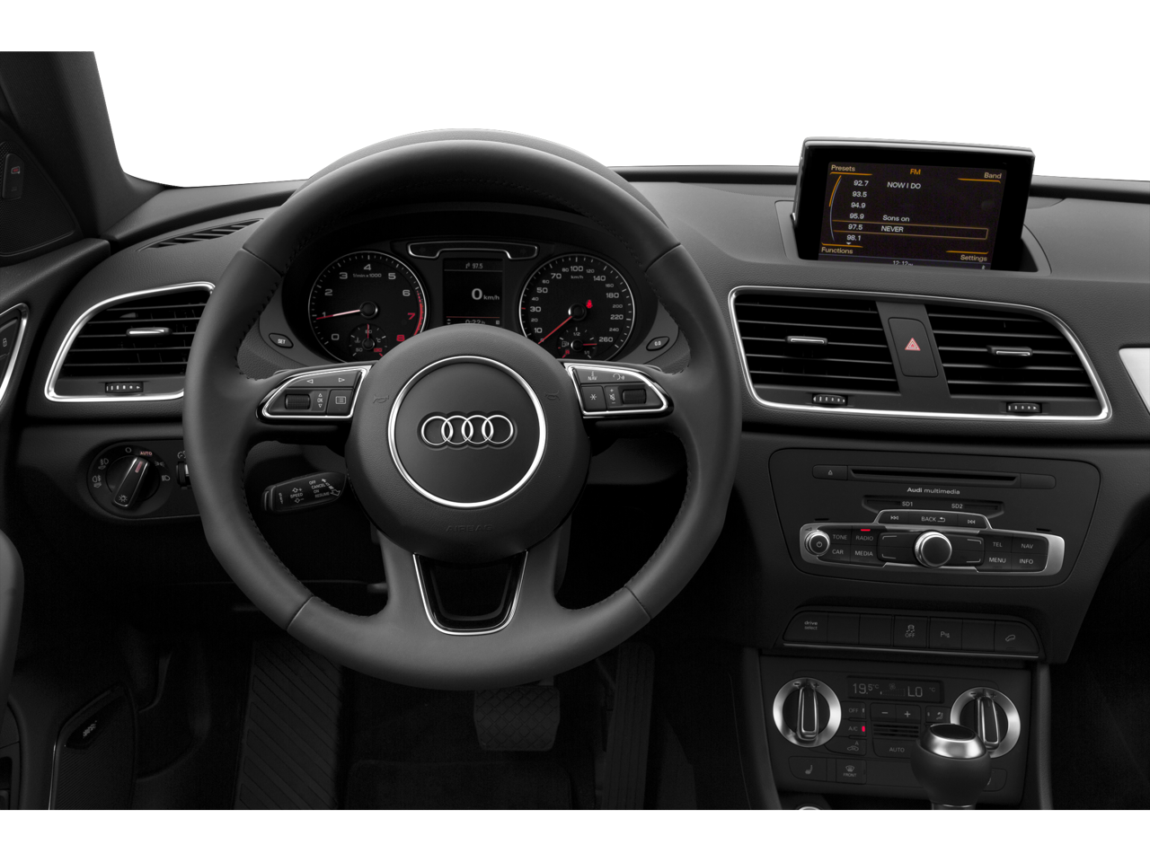 Check out all of the features on this 2015 Audi Q3 Driver Assistance Package (Parking System Plus w/Rearview Camera), 10 Speakers, 4-Wheel Disc Brakes, ABS brakes, Air Conditioning, Alloy wheels, AM/FM radio, Audi Guard Cargo Mat, Auto-dimming Rear-View mirror, Automatic temperature control, Axle Ratio: TBD, Brake assist, Bumpers: body-color, CD player, Compass, Delay-off headlights, Driver door bin, Driver vanity mirror, Dual front impact airbags, Dual front side impact airbags, Electronic Stability Control, Four wheel independent suspension, Front anti-roll bar, Front Bucket Seats, Front Center Armrest, Front dual zone A/C, Front fog lights, Front reading lights, Fully automatic headlights, Heated door mirrors, Heated Front Seats, Heated front seats, High intensity discharge headlights: Xenon plus, Illuminated entry, Leather Seating Surfaces, Leather Shift Knob, Leather steering wheel, Low tire pressure warning, Occupant sensing airbag, Outside temperature display, Overhead airbag, Overhead console, Panic alarm, Passenger door bin, Passenger vanity mirror, Power door mirrors, Power driver seat, Power moonroof, Power passenger seat, Power steering, Power windows, Radio data system, Radio: Audi Concert w/AM/FM/CD/SAT, Rain sensing wipers, Rear anti-roll bar, Rear fog lights, Rear reading lights, Rear seat center armrest, Rear window defroster, Rear window wiper, Remote keyless entry, Roof rack: rails only, Security system, Speed control, Speed-sensing steering, Split folding rear seat, Spoiler, Steering wheel mounted audio controls, Tachometer, Telescoping steering wheel, Tilt steering wheel, Traction control, Trip computer, Turn signal indicator mirrors, Variably intermittent wipers, and Wheels: 7.0J x 18 5-Arm-Design.