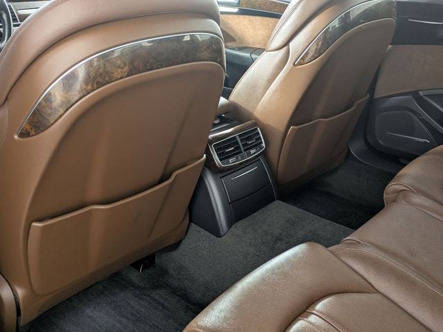 Moonlight Blue 2017 Audi A8 L 3.0T quattro quattro 8-Speed Automatic with Tiptronic 3.0L V6 Turbocharged DOHC 24V ULEV II 333hp Brown Leather, 14 Speakers, 22-Way Power Heated Front Comfort Sport Seats, 4-Spoke Multifunction Heated Steering Wheel, Adaptive suspension, AM/FM radio: SiriusXM, Audi Active Lane Assist, Audi Adaptive Cruise Control w/Stop & Go, Audi Head-Up Display, Audi Side Assist w/Pre Sense Rear, Auto tilt-away steering wheel, Auto-dimming door mirrors, Auto-dimming Rear-View mirror, Auto-leveling suspension, Bose Surround Sound System w/AudioPilot, CD player, Compass, Delay-off headlights, Driver Assistance Package, DVD-Audio, Executive Package, Exterior Parking Camera Rear, Front dual zone A/C, Front fog lights, Front Seat Ventilation with Massage, Garage door transmitter: HomeLink, Genuine wood console insert, Head restraints memory, Headlight cleaning, Heated front seats, High-Beam Assistant, Illuminated entry, Memory seat, Panoramic Sunroof, Power driver seat, Power passenger seat, Radio: Audi MMI Navigation Plus System, Rain sensing wipers, Rear dual zone A/C, Rear Heated Seats, Rear Seat Pass-Through, Remote keyless entry, Security system, Speed-Sensitive Wipers, Steering wheel memory, Telescoping steering wheel, Tilt steering wheel, Topview Camera System (Front, Rear & Side Views), Valetta Leather Seat Upholstery, Variably intermittent wipers, Wheels: 9 x 20 10-Spoke-Star Design.