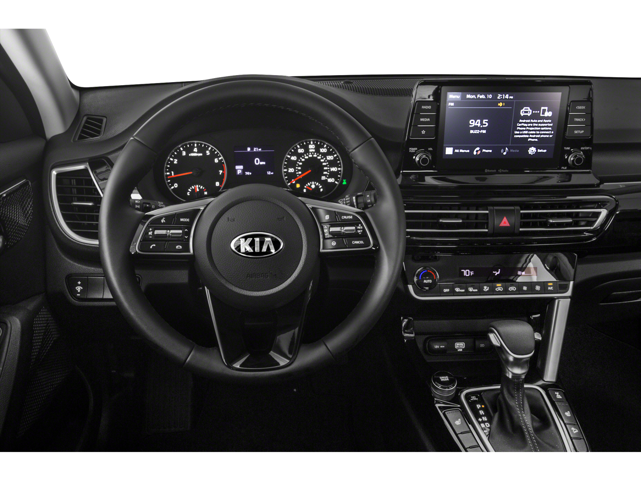 Clear White/Black Roof 2021 Kia Seltos S FWD CVT 2.0L I4 MPI Apple CarPlay & Android Auto, Auto-Dimming Mirror, Exterior Parking Camera Rear, Front fog lights, Fully automatic headlights, Glossy Black Door Garnish Package, Glossy Black Door Garnishes, Outside temperature display, Radio: AM/FM/MP3 Display Audio, Remote keyless entry, Remote Start, Telescoping steering wheel, Tilt steering wheel, Wheels: 17 Alloy w/Dark Gray Finish.