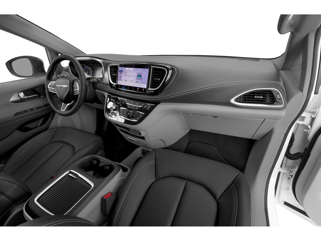 Check out all of the features on this 2023 Chrysler Pacifica 17 x 7.0 Aluminum Wheels, GPS Antenna Input, Touring Suspension, 10.1 Touchscreen Display, 3.25 Axle Ratio, 3rd row seats: split-bench, 4-Wheel Disc Brakes, 6 Speakers, ABS brakes, Air Conditioning, AM/FM radio: SiriusXM, Apple CarPlay, Apple CarPlay/Android Auto, Audio memory, Automatic temperature control, Brake assist, Bumpers: body-color, Caprice Leatherette Bucket Seats, Compass, Delay-off headlights, Disassociated Touchscreen Display, Driver door bin, Driver vanity mirror, Driver's Seat Mounted Armrest, Dual front impact airbags, Dual front side impact airbags, Electronic Stability Control, Four wheel independent suspension, Front anti-roll bar, Front Bucket Seats, Front dual zone A/C, Front Fascia Air Deflectors, Front fog lights, Front reading lights, Fully automatic headlights, Google Android Auto, Heated door mirrors, Heated front seats, Heated steering wheel, Illuminated entry, Integrated Active Noise Cancellation, Integrated Center Stack Radio, Knee airbag, Low tire pressure warning, Memory seat, Occupant sensing airbag, Outside temperature display, Overhead airbag, Overhead console, Panic alarm, ParkView Rear Back-Up Camera, Passenger door bin, Passenger seat mounted armrest, Passenger vanity mirror, Power door mirrors, Power driver seat, Power Liftgate, Power steering, Power windows, Radio data system, Radio: Uconnect 5 w/10.1 Display, Rain sensing wipers, Rear air conditioning, Rear reading lights, Rear window defroster, Rear window wiper, Reclining 3rd row seat, Remote keyless entry, Security system, Speed control, Split folding rear seat, Spoiler, Steering wheel mounted audio controls, Tachometer, Telescoping steering wheel, Tilt steering wheel, Traction control, Trip computer, Turn signal indicator mirrors, USB Host Flip, Variably intermittent wipers, and Voltmeter.