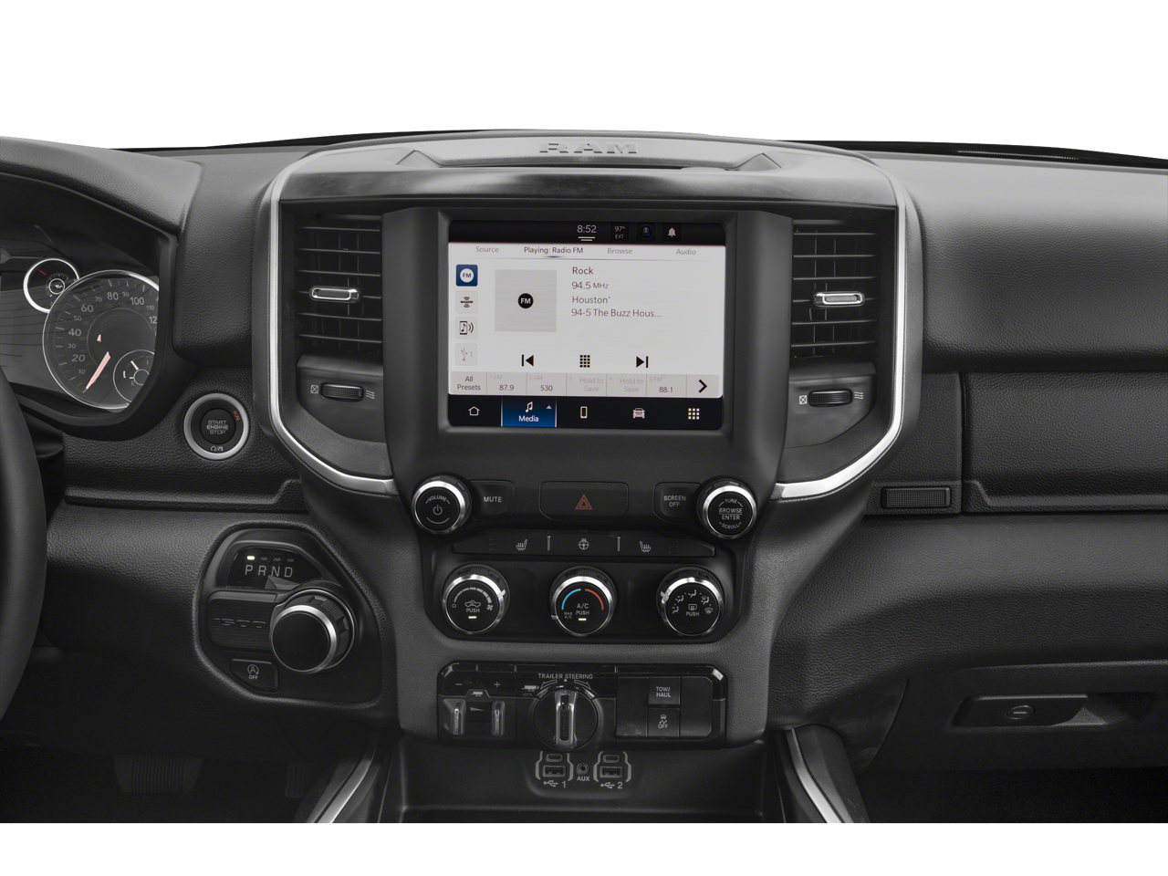 • Big Horn Level 1 Equipment Group with heated front seats, heated steering wheel, power folding mirrors, fog lamps, smart device integration, and WiFi hotspot